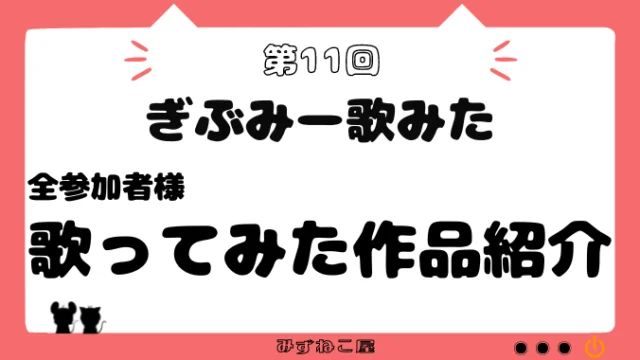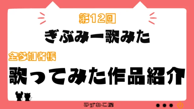 歌企画 2023.09.042025.09.29 過去に開催された全歌ってみた企画をまとめています。気になるタイトルをクリックして、思い出の作品を聴き返してみてね。 開催済み企画 企画【秋の歌を実らせよう♪四季の歌2022】ピックアップ発表 2022.11.102023.09.04 企画【夏の歌を打ち上げよう♪四季の歌2022】ピックアップ発表 2022.09.102023.09.04 企画【春の歌を咲かせよう♪四季の歌2022】ピックアップ発表 2022.05.102023.09.04 企画【春の歌を咲かせよう♪】説明 2022.04.022023.09.04 もっと見る 参加作品紹介 企画【第13回ぎぶみー歌みた】歌ってみた作品紹介 2023.03.15 企画【第12回ぎぶみー歌みた】歌ってみた作品紹介(全参加者様) 2022.11.27 企画【秋の歌を実らせよう♪四季の歌2022】歌ってみた作品紹介(全参加者様) 2022.11.082022.11.15 企画【第11回ぎぶみー歌みた】歌ってみた作品紹介(全参加者様) 2022.10.122022.11.18 もっと見る 人気記事 【歌ってみたを始める君へPart.3 録音・編集編】無料ソフトでOK?歌ってみたの音を極める「DAWソフト」と「モニター環境」の重要性! 2025.12.07