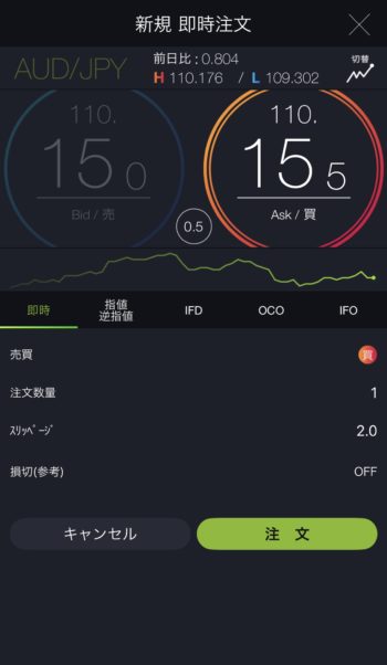 注文が通ると、画面下に「ポジション」という形で自分の注文が表示される。 ここで色気を出してはいけない。表示された瞬間に、すぐ横にある「決済」ボタンをタップするんだ。